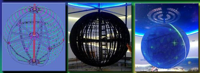 1、對于直徑較大的室外球形LED顯示屏,可以采用單像素筒的方式來做。將球按照緯度的方式進行切割,每一個緯度放置一行LED像素筒。