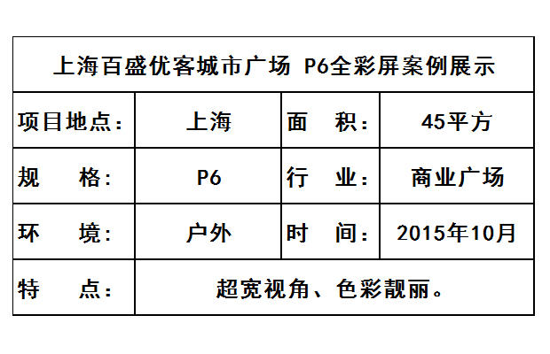 上海百盛優客城市廣場地鐵口全彩LED屏