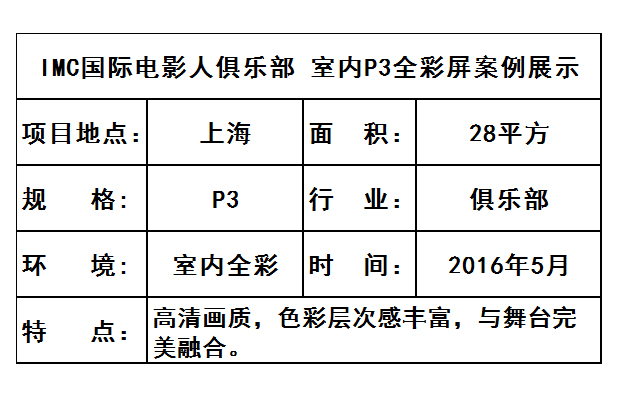 上海 IMC國際電影人俱樂部 背景顯示屏
